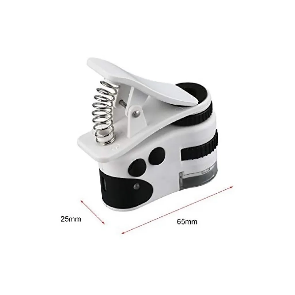 Cep Telefonları için özel  bir mikroskop Mandalı ile Kamera lensine kolayca bağlanabilir.