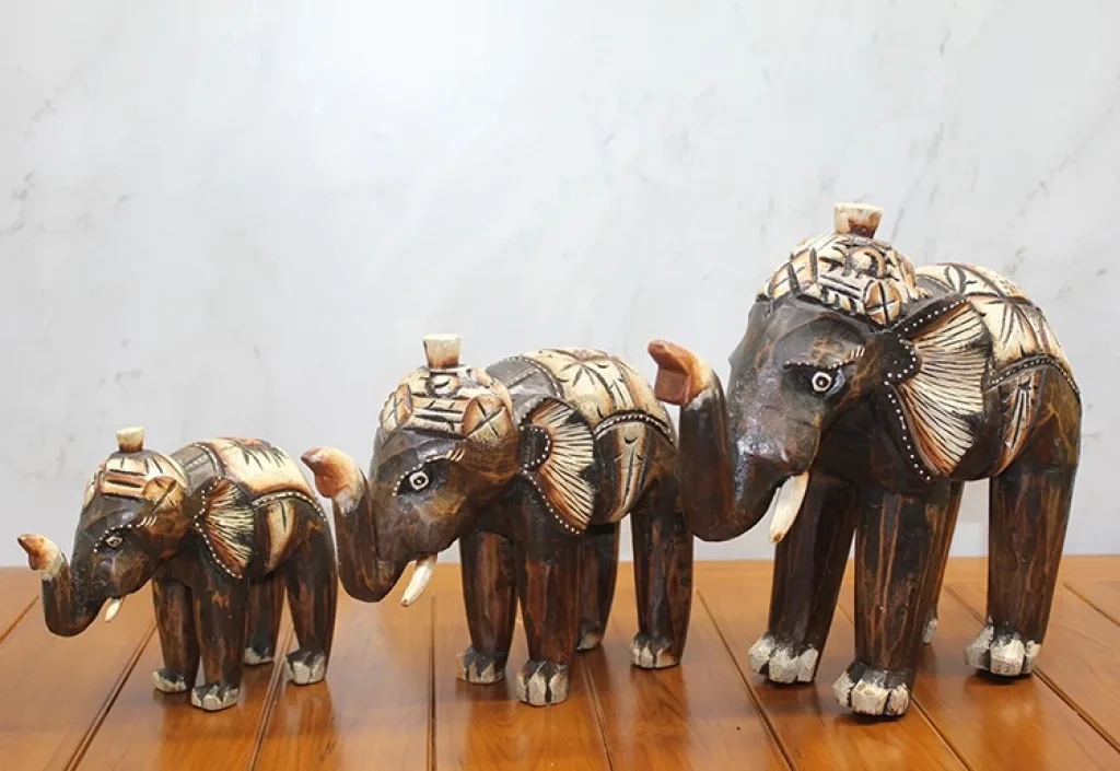 Ahşap 3'Lü Fil Seti Okas:12 Ürün Ölçüleri 15-20-25 Cm