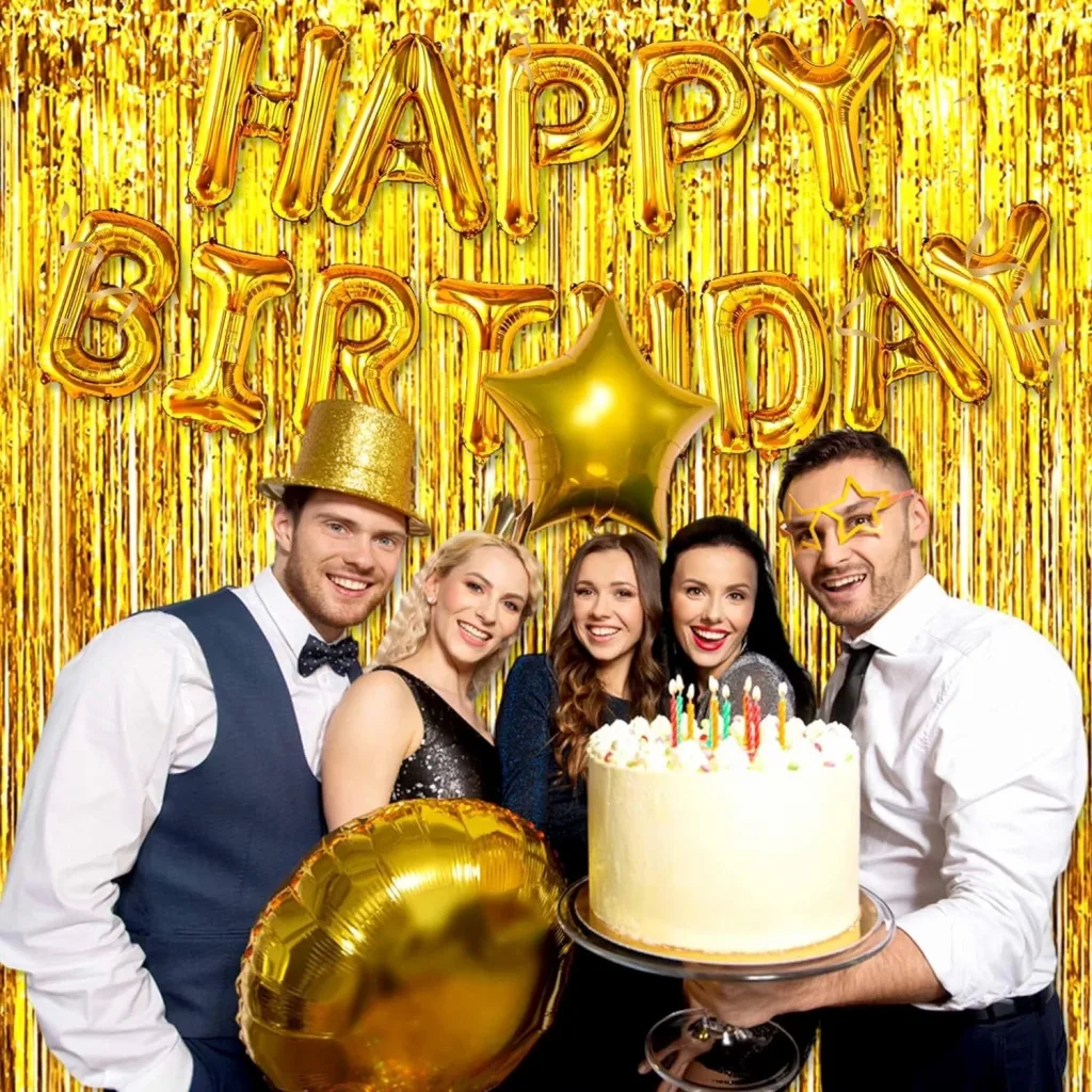 Altın Gold renk ekstra metalize parlak saçaklı arka fon perdesi ile özel günlerinize ve kutlamalarınıza göz kamaştırıcı bir ışıltı katın İthal A kalite malzemeden üretilen bu perde, 1x2 metre boyutuyla her türlü dekorasyona uyum sağlar.