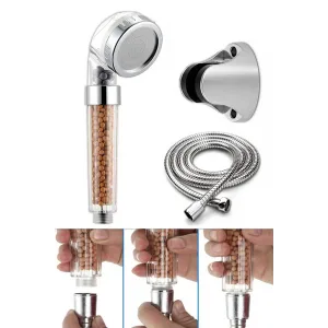 Filtreli Ve Su Tasarruflu Arıtmalı Duş Başlığı Seti Boncuklu Başlık Hortum Ve Mafsal Set