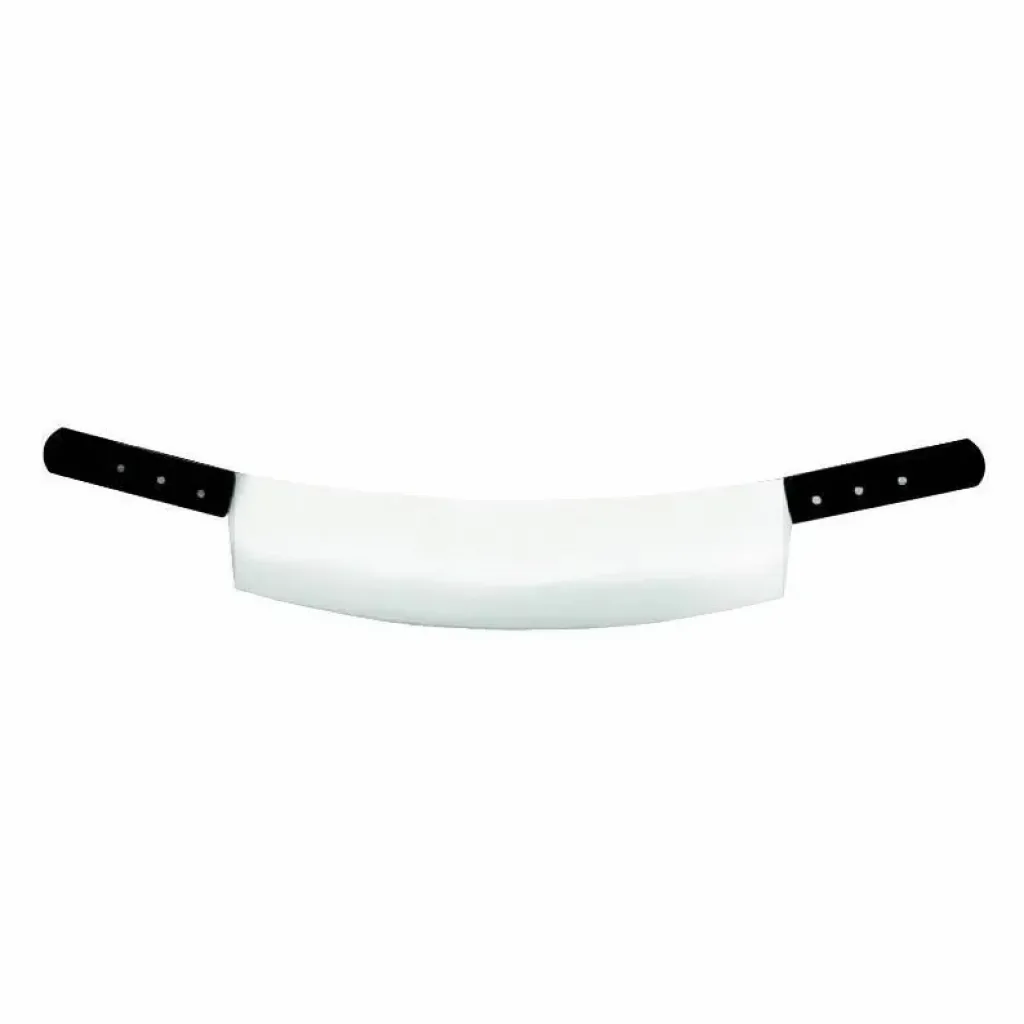 Çift Saplı Tasarım: Bıçağın çift saplı tasarımı, ekstra denge ve kontrol sağlar. İki sap, bıçağın kullanımını daha rahat hale getirir, özellikle büyük et parçalarını keserken ekstra kontrol ve stabilite sunar. Saplar ergonomik olarak tasarlanmış olup elinize mükemmel şekilde oturur ve uzun süreli kullanımlarda bile konfor sağlar. Genellikle kaymaz özellikte olan saplar, güvenli bir tutuş sağlar.