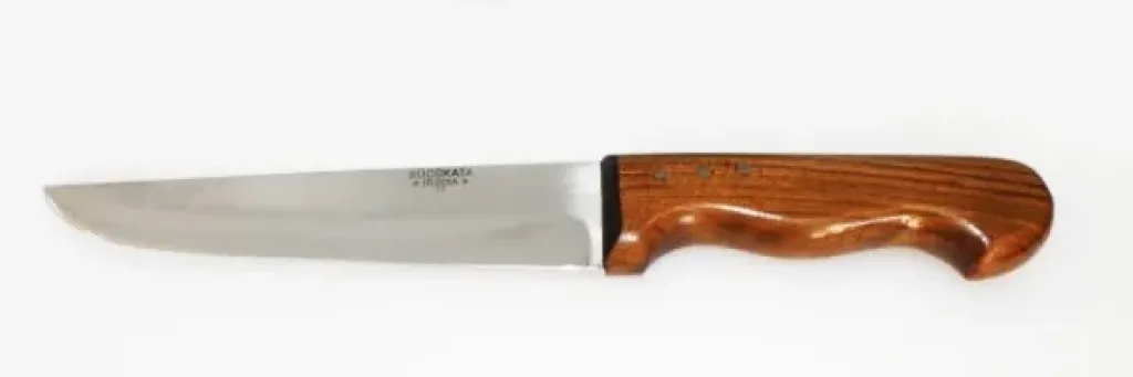 - Ahşap: Bıçağın sapı, doğal ahşap malzemeden üretilmiştir. Ahşap sap, dayanıklı ve ergonomik bir yapı sunar. Rahat bir tutuş sağlar ve bıçağın uzun süreli kullanımı sırasında konfor sunar. Ahşap, estetik bir görünüm ve sağlamlık kazandırır.