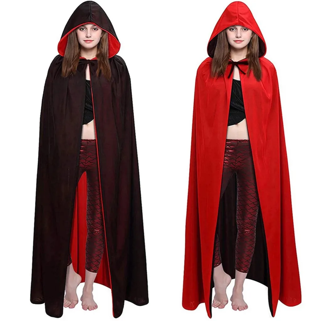 Çift Taraflı Kullanılabilir Siyah Kırmızı Kapişonlu Pelerin 140 cm Yetişkin, kostüm partileri, cosplay veya diğer özel günlerde eğlenceli ve gizemli bir görünüm elde etmek isteyenler için mükemmel bir seçimdir. Siyah ve kırmızı olmak üzere iki farklı rengi ile kullanılabilen bu pelerin, size birçok farklı kostüm seçeneği sunar. Kapüşonu ve uzun boyu ile de gizemli bir hava katacaktır.