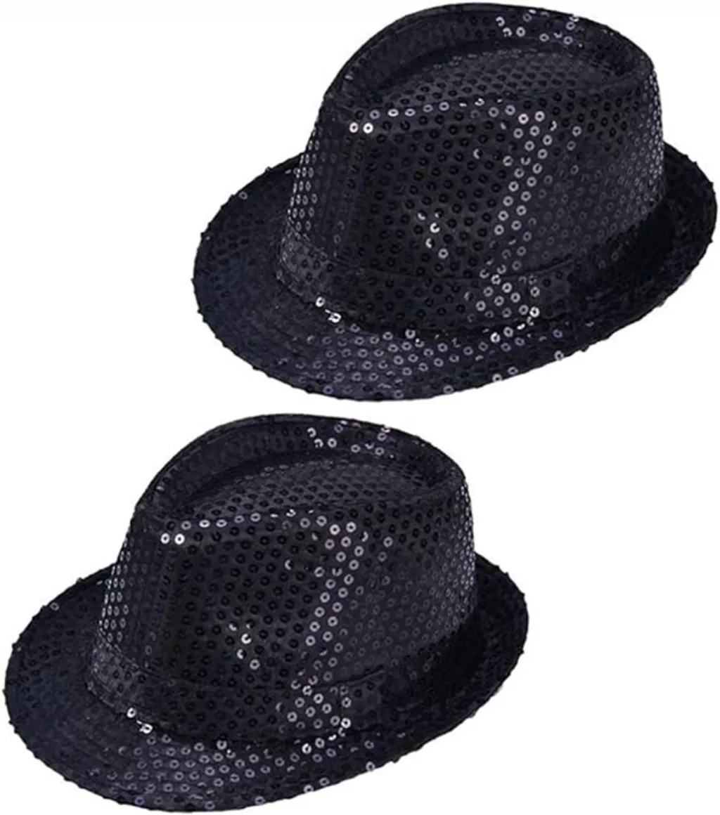 Çocuk Boy Siyah Payetli Şapka Gösteri Şapkası Michael Jackson Şapkası 54 Numara