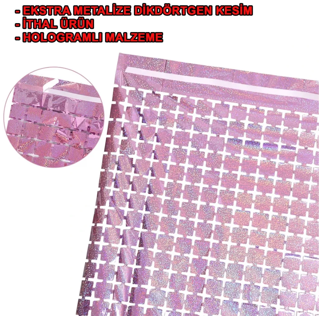 Ekstra Metalize Rose Gold Renk Dikdörtgen Kesim Kapı Perdesi Dekorasyon 1x2 Metre, evinizin atmosferini göz alıcı bir ışıltıyla dönüştürmek için ideal bir üründür. Metalize rose gold rengi ve zarif dikdörtgen kesimiyle şıklık ve modernliği bir araya getirir. Kapı perdesi olarak kullanabileceğiniz gibi, duvar dekorasyonu veya pencere süslemesi olarak da farklı kullanım alanları sunar.