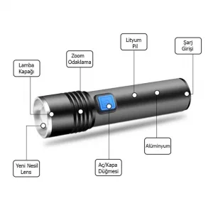 Profesyonel Tx6 Şarjlı Zoomlu El Feneri Wt-241