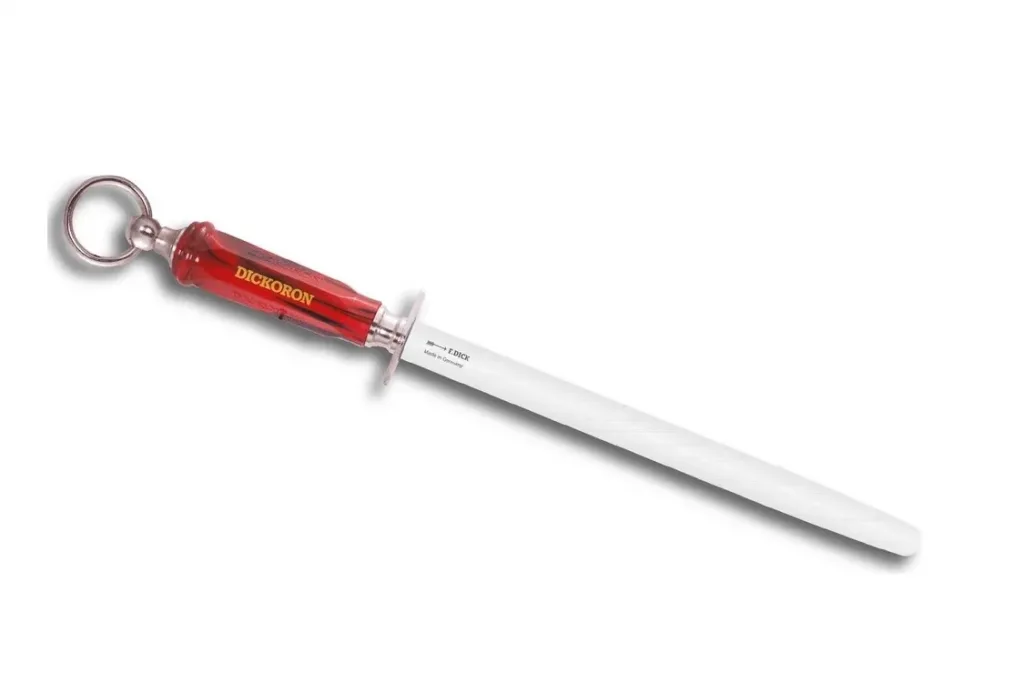 - Keskinleştirme ve Bakım: DICKORON Masat, bıçakların keskinliğini artırmak ve korumak için kullanılır. Balık sırtı (oval) yüzeyi, bıçağın kenarını düzgün bir şekilde bilemesine ve keskinliğini uzun süre korumasına yardımcı olur.