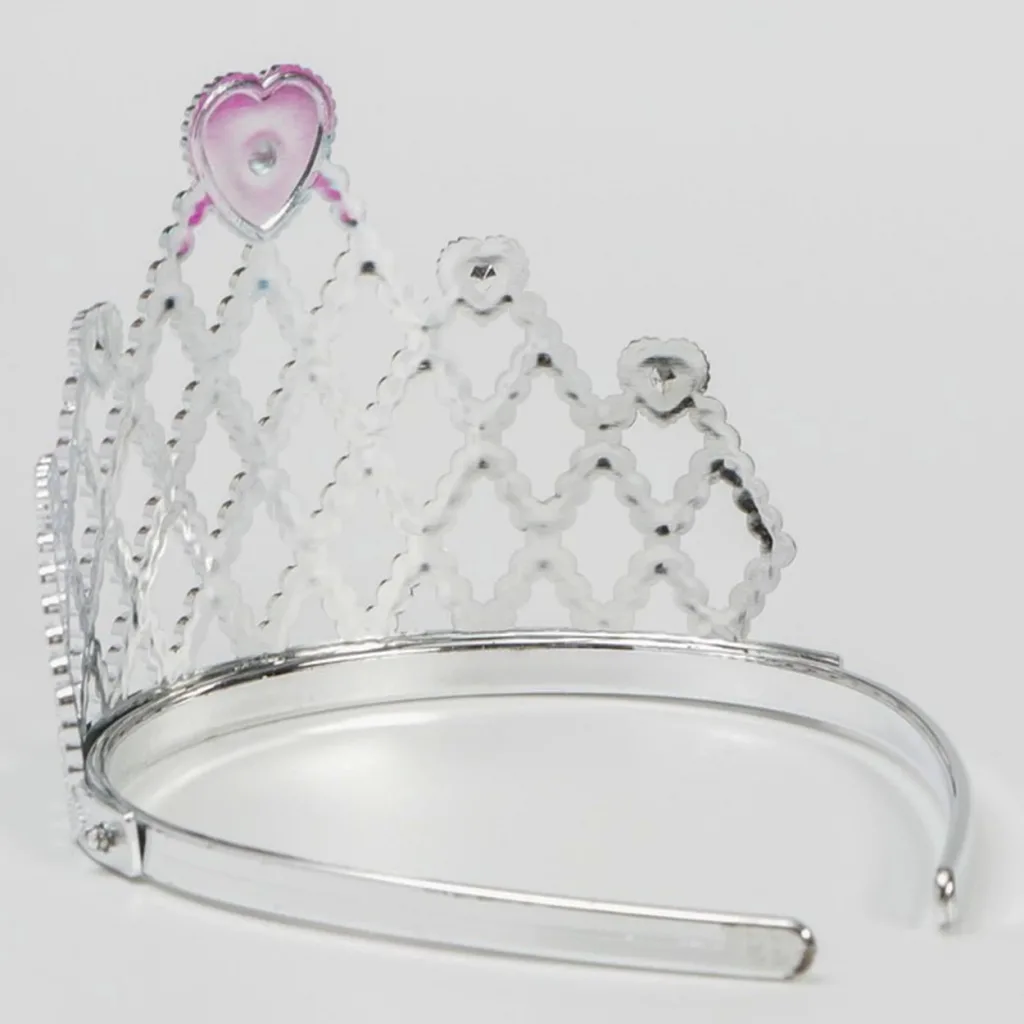 Bu taç, gümüş renginde ve fuşya kalp süslemesi ile zarif ve modern bir tasarıma sahiptir. Taçtaki parıldayan taşlar ise masalsı bir atmosfer yaratarak küçük prensesinizin göz kamaştırmasını sağlayacaktır.