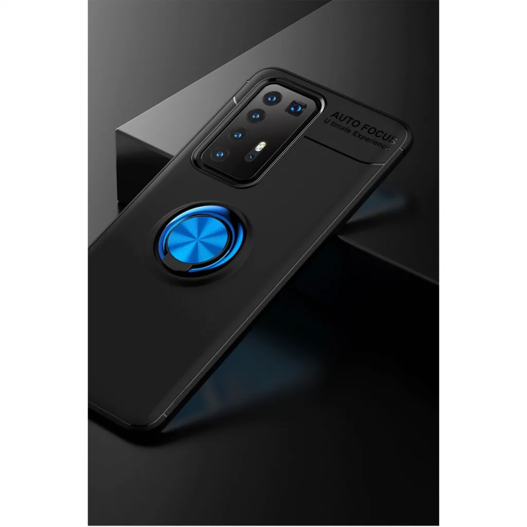 Huawei P40 Pro Kılıf Range Yüzüklü Silikon - Siyah-mavi