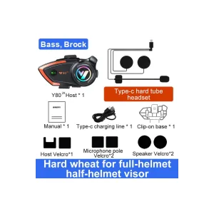Yeni Model Y80-2x Motosiklet İntercom 2 Kişilik Bağlantı Rgb Işıklı Bluetooth Kulaklık Seti