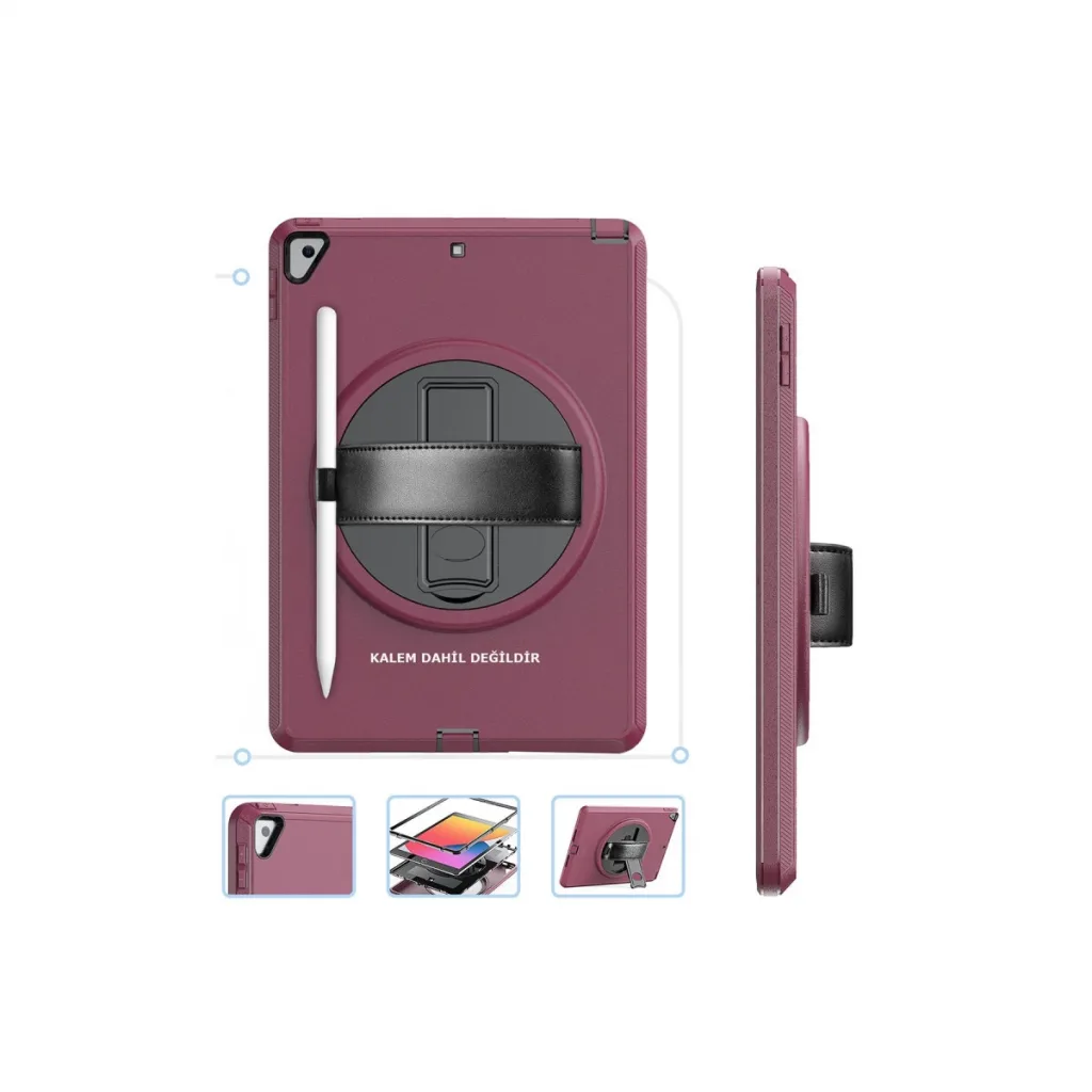 İpad 10.2 (7.nesil) Kılıf Hand Strap Tablet Kılıfı - Mürdüm