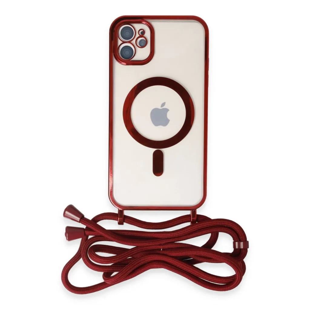 İphone 11 Kılıf Divo Lazer Askılı Magsafe Kapak - Kırmızı