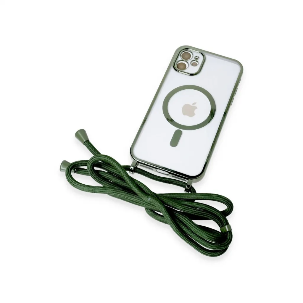 İphone 11 Kılıf Divo Lazer Askılı Magsafe Kapak - Koyu Yeşil