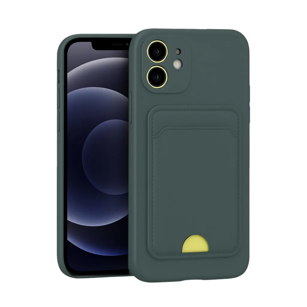 İphone 11 Kılıf Kelvin Kartvizitli Silikon - Koyu Yeşil