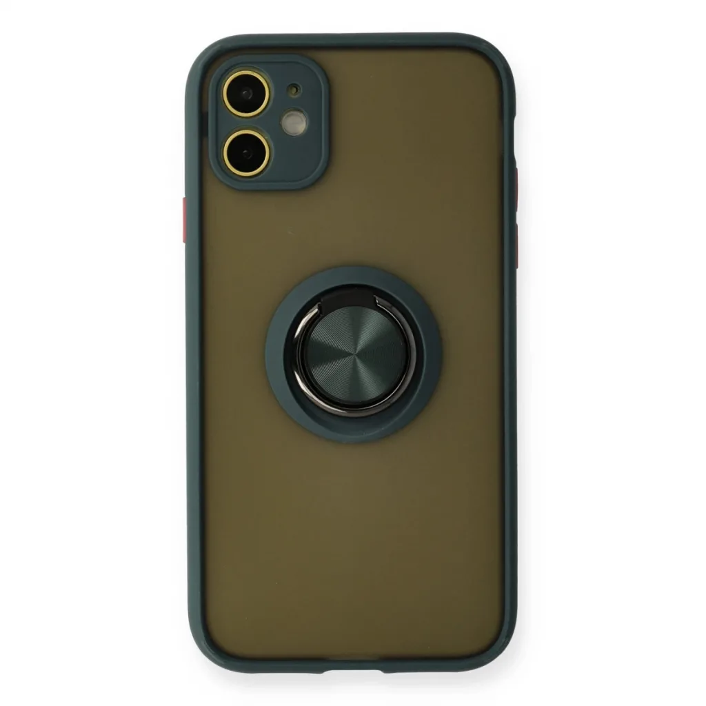 İphone 11 Kılıf Montreal Yüzüklü Silikon Kapak - Yeşil