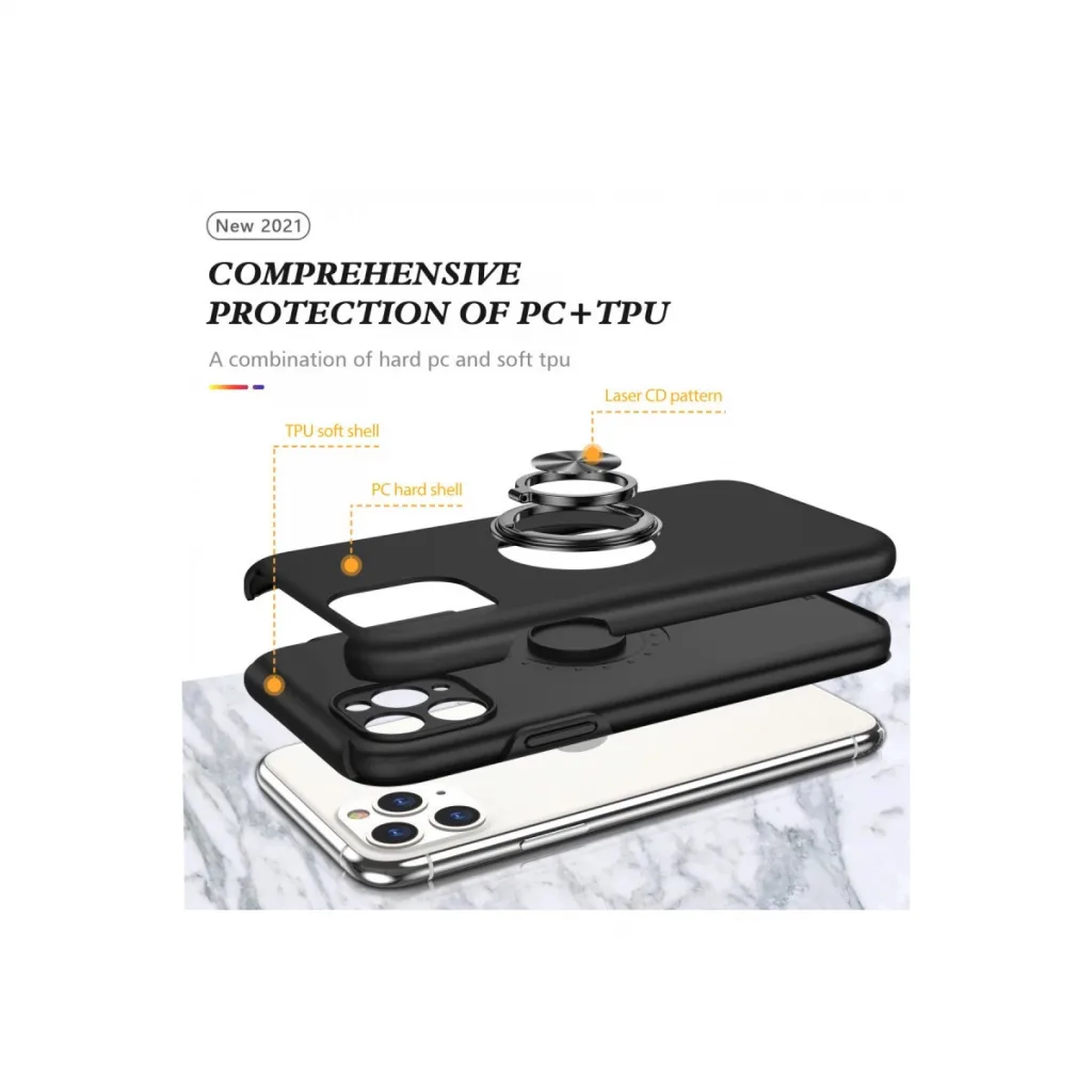 İphone 11 Pro Max Kılıf Elit Yüzüklü Kapak - Siyah