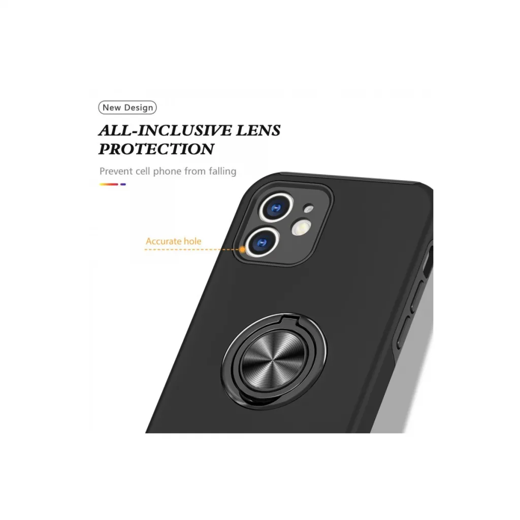 İphone 12 Kılıf Elit Yüzüklü Kapak - Siyah