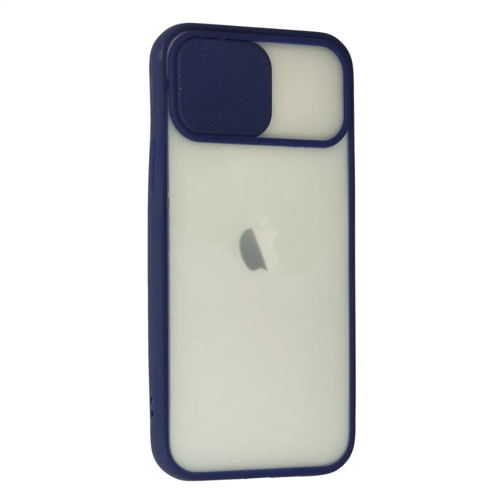 İphone 12 Kılıf Palm Buzlu Kamera Sürgülü Silikon - Lacivert