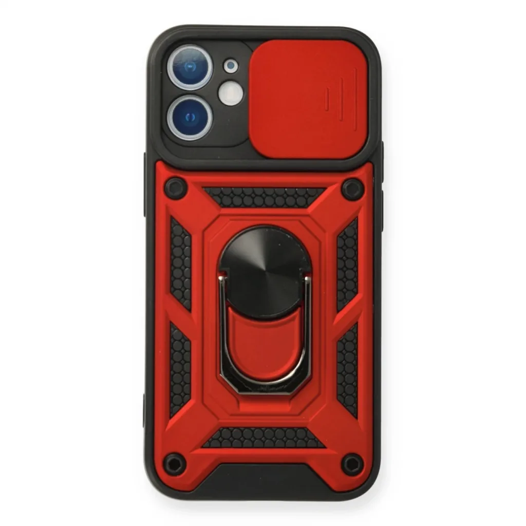 İphone 12 Mini Kılıf Pars Lens Yüzüklü Silikon - Kırmızı