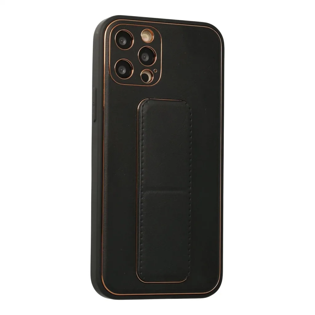İphone 12 Pro Kılıf Coco Deri Standlı Kapak - Siyah