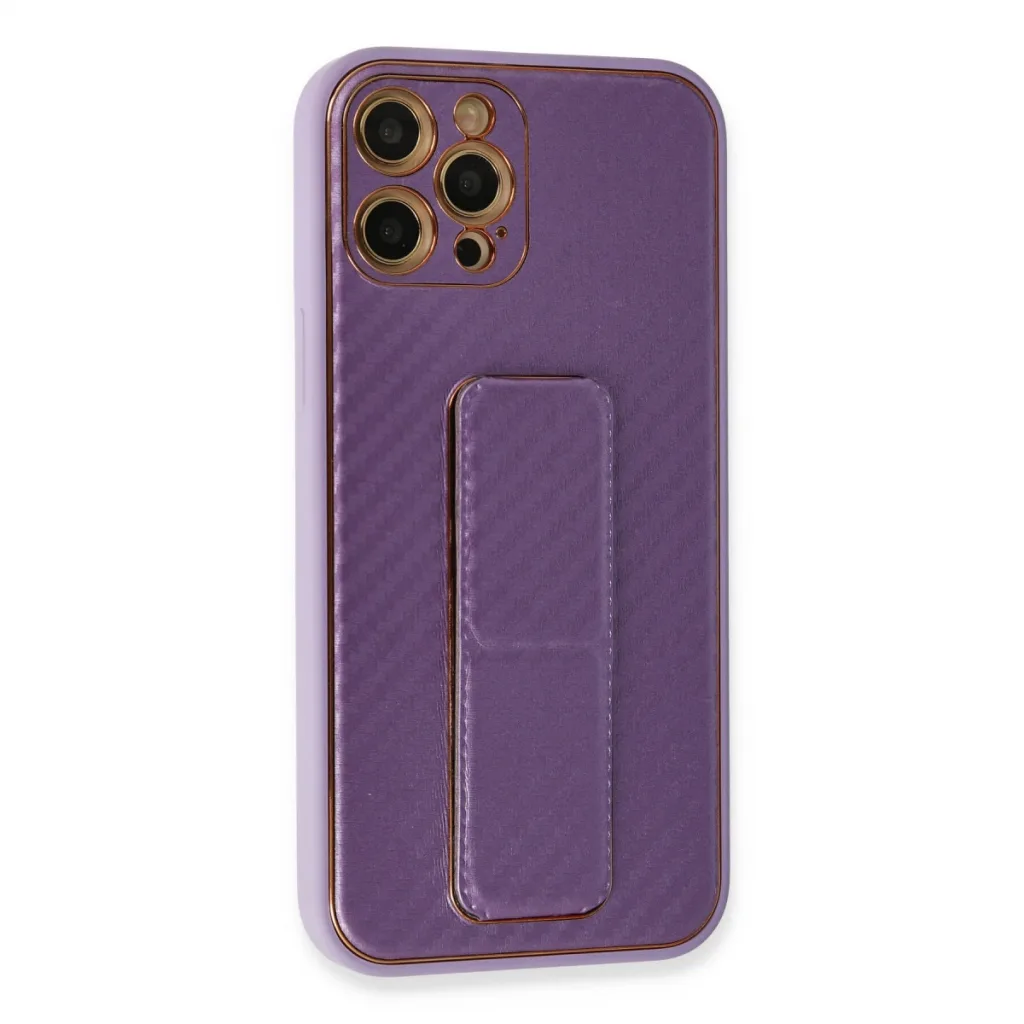 İphone 12 Pro Kılıf Coco Karbon Standlı Kapak - Mor