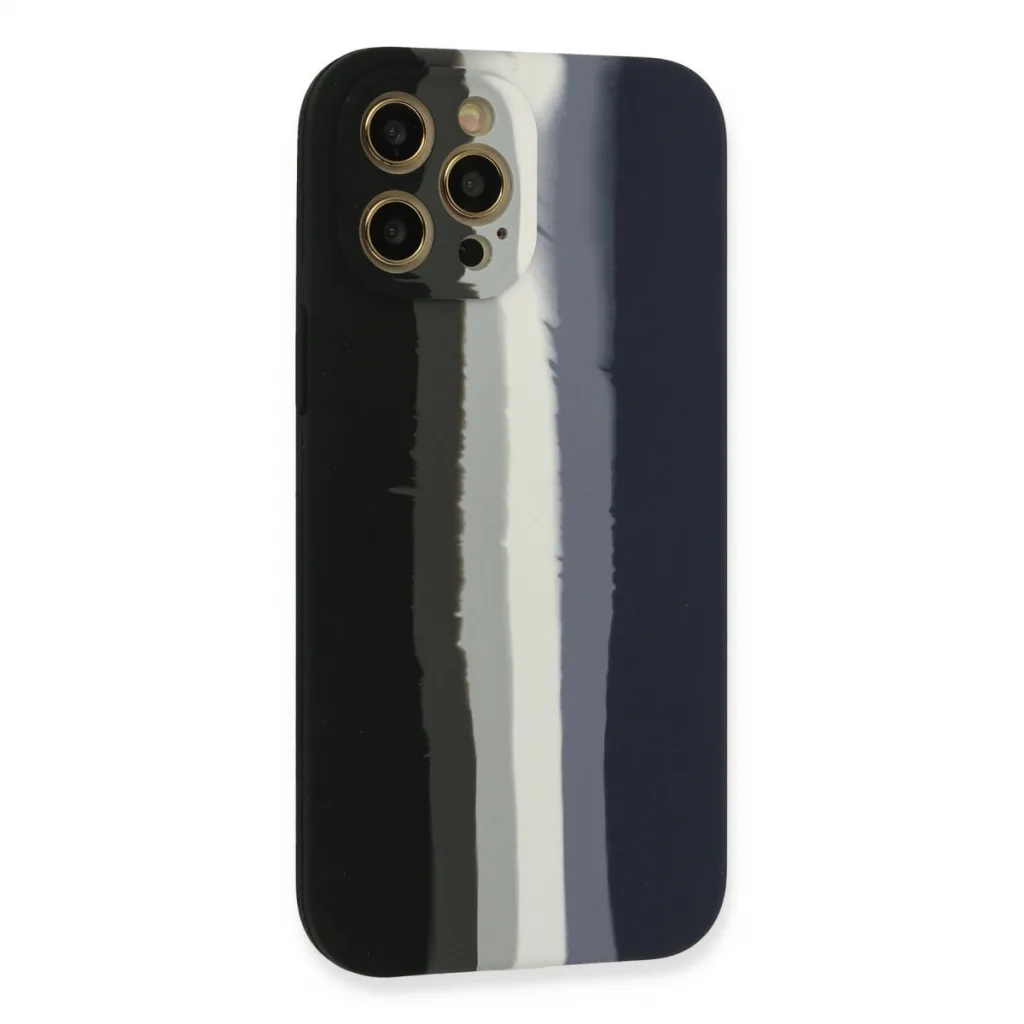 İphone 12 Pro Kılıf Ebruli Lansman Silikon - Siyah-lacivert