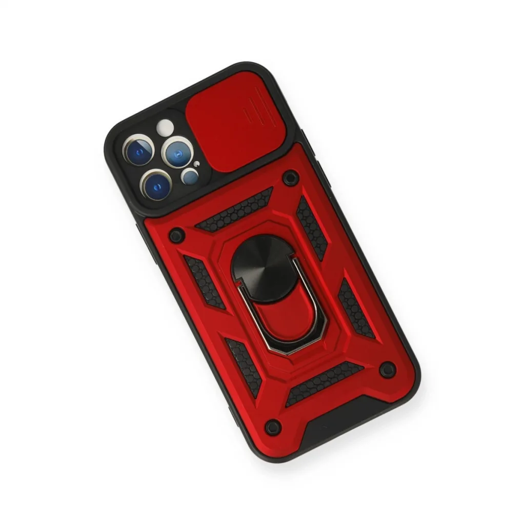 İphone 12 Pro Kılıf Pars Lens Yüzüklü Silikon - Kırmızı