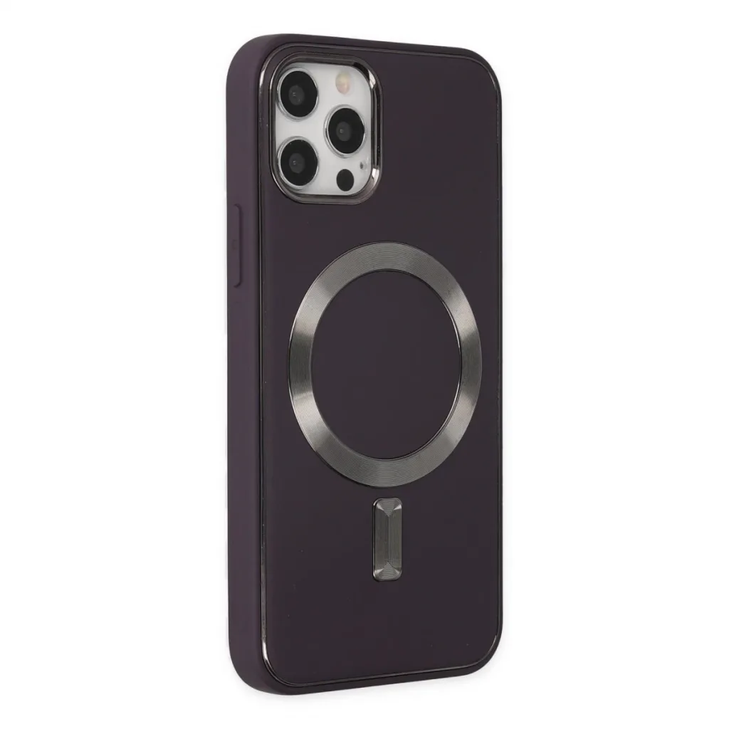 İphone 12 Pro Max Kılıf Coco Deri Magneticsafe Silikon - Derin Mor