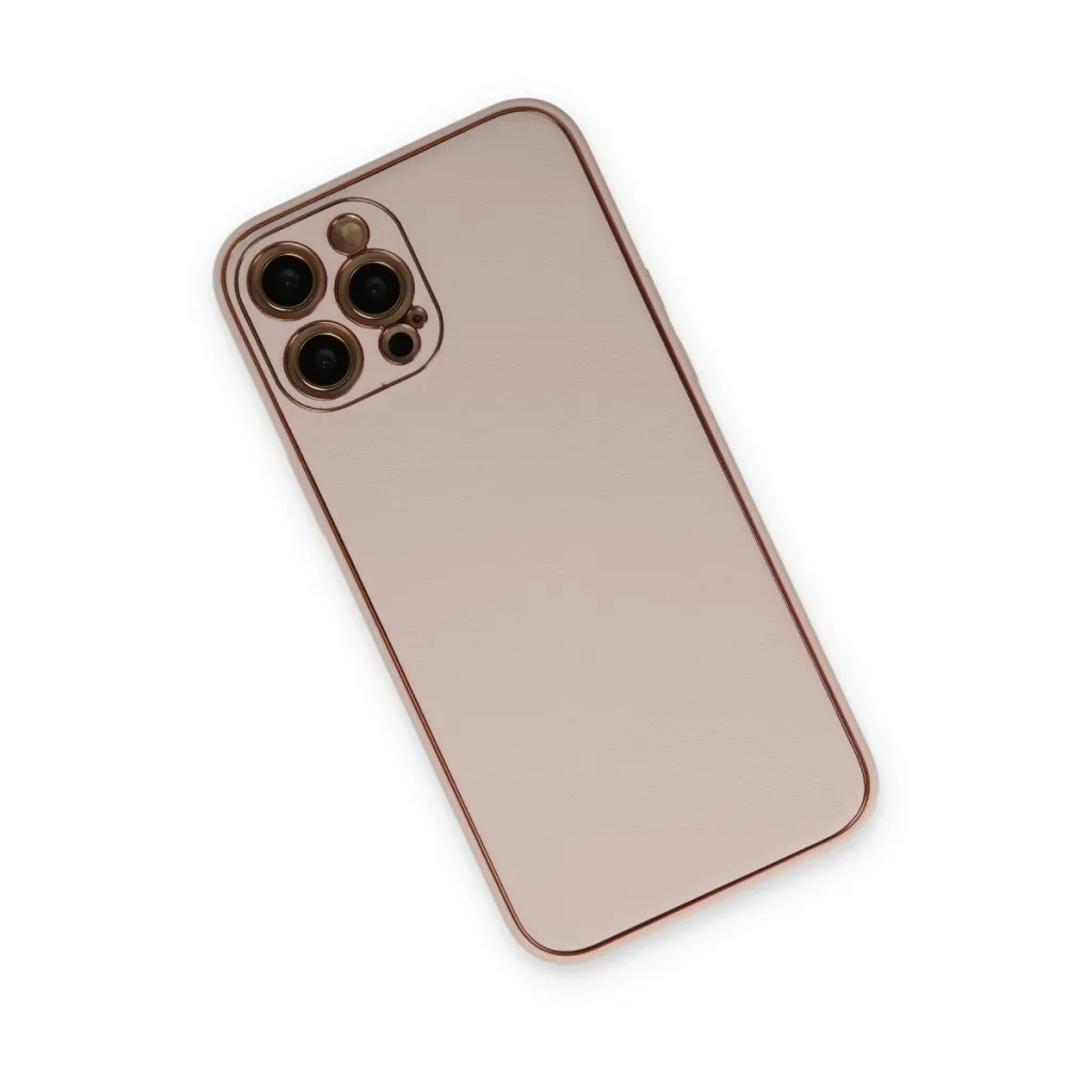 İphone 12 Pro Max Kılıf Coco Deri Silikon Kapak - Pudra