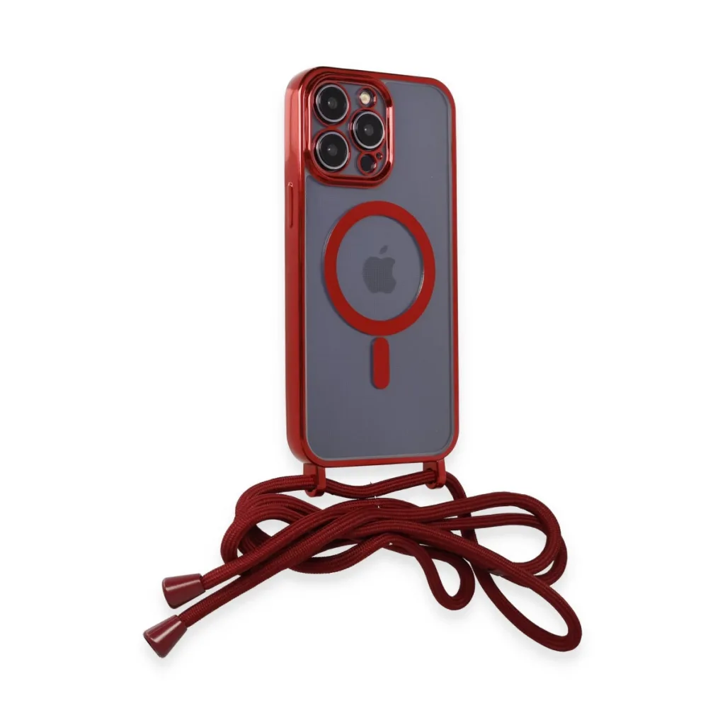 İphone 12 Pro Max Kılıf Divo Lazer Askılı Magsafe Kapak - Kırmızı