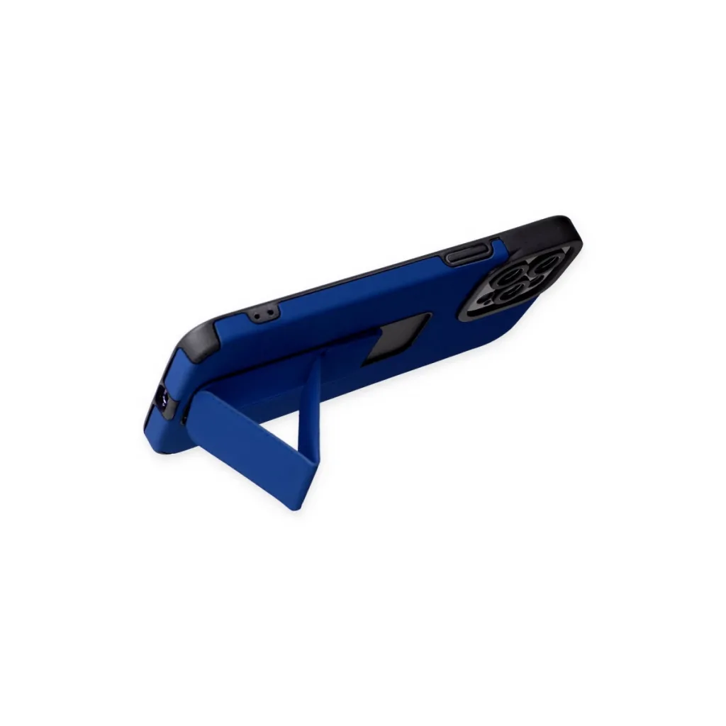 İphone 12 Pro Max Kılıf Mega Standlı Silikon - Mavi