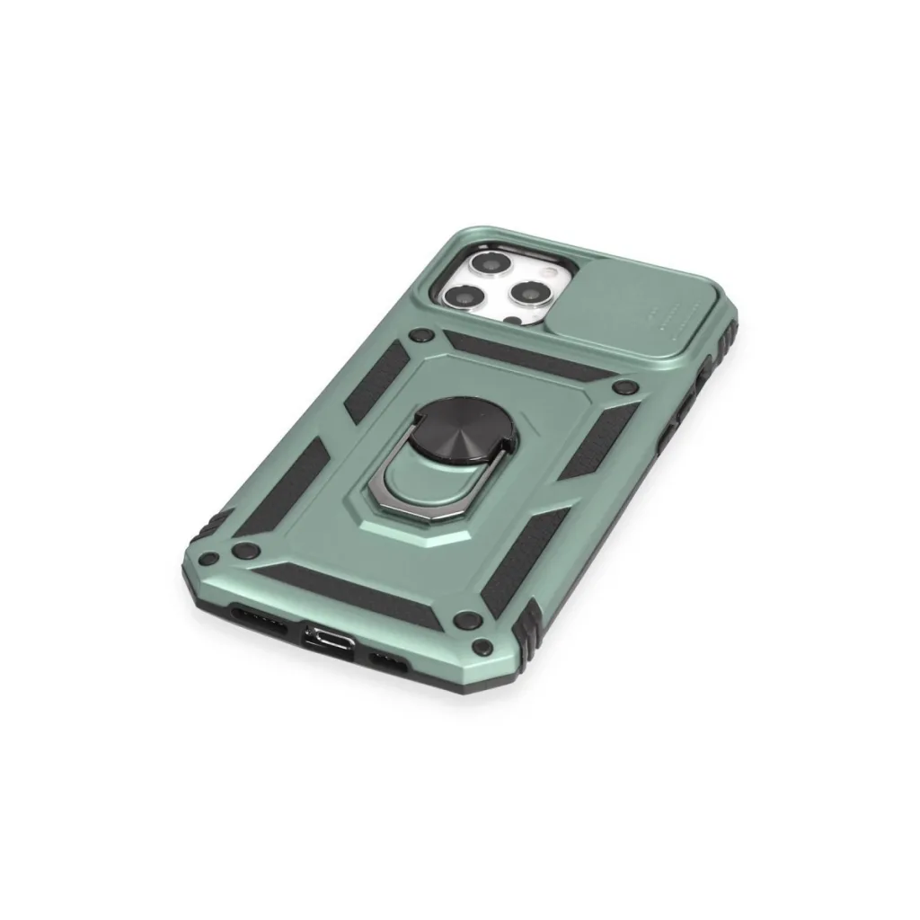İphone 12 Pro Max Kılıf Pars Lens Yüzüklü Silikon - Yeşil
