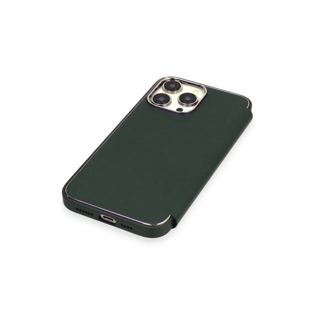 İphone 13 Pro Max Kılıf Dolpin Kapaklı - Koyu Yeşil