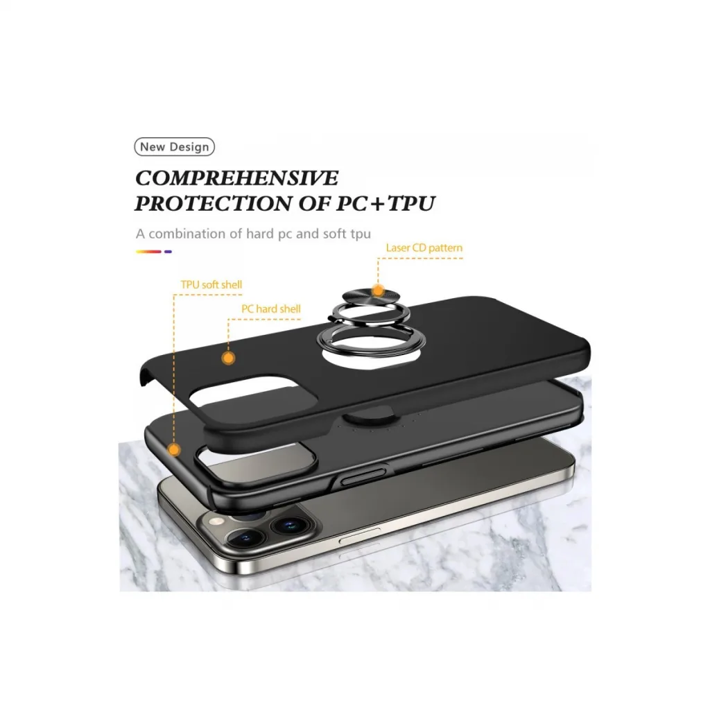 İphone 13 Pro Max Kılıf Elit Yüzüklü Kapak - Siyah
