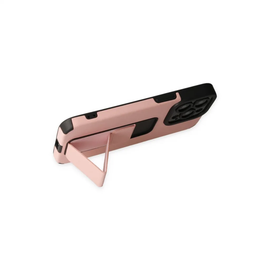 İphone 13 Pro Max Kılıf Mega Standlı Silikon - Pudra