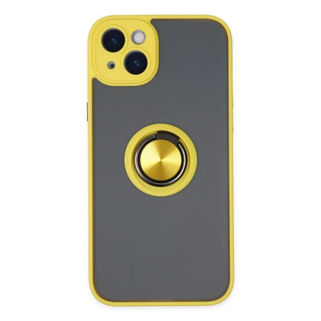 İphone 14 Kılıf Montreal Yüzüklü Silikon Kapak - Sarı