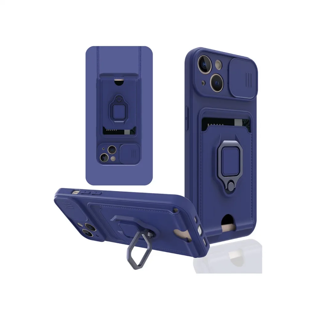 İphone 14 Plus Kılıf Zuma Kartvizitli Yüzüklü Silikon - Lacivert