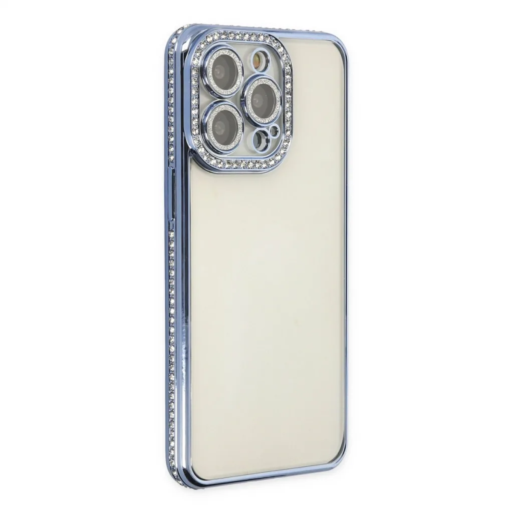 İphone 14 Pro Kılıf Joke Taşlı Silikon - Mavi