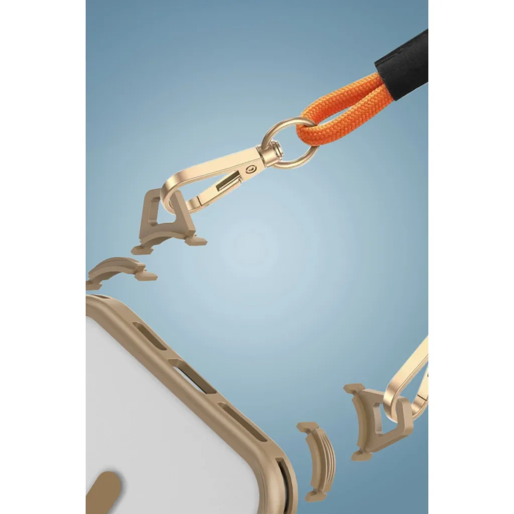 Köşelerdeki özel halkalar sayesinde çıkarılabilir askı aparatı takılabilir. Böylece telefonunuzu boynunuza, omzunuza veya bileğinize takarak hem özgürlük hem de kolay erişim sağlarsınız. Yürüyüşlerde, kalabalık ortamlarda ya da seyahatlerde vazgeçilmez bir konfor sunar.