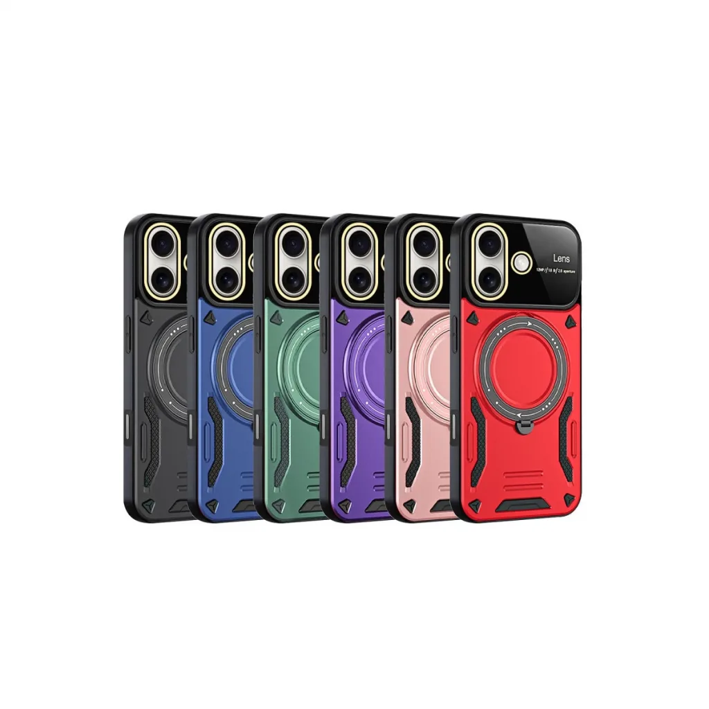 İphone 16 Kılıf Joy Lens Standlı Kapak - Koyu Yeşil