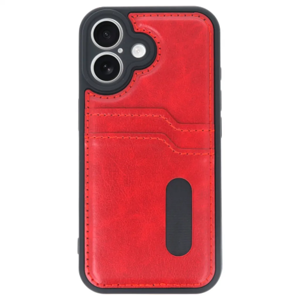 İphone 16 Kılıf Sara Kartvizitli Deri Kılıf - Kırmızı