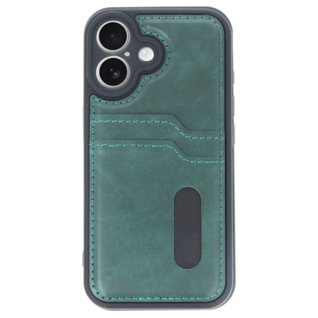 İphone 16 Kılıf Sara Kartvizitli Deri Kılıf - Koyu Yeşil