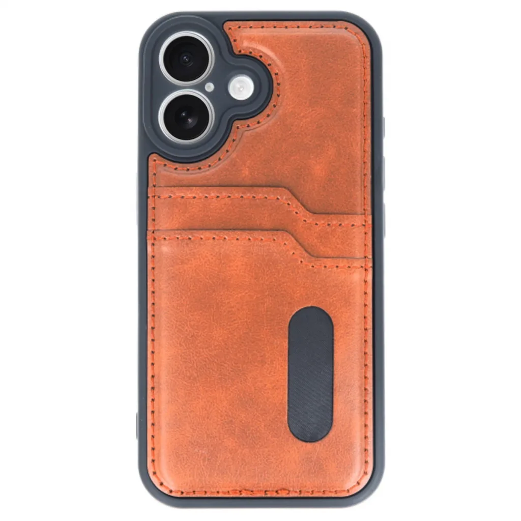 İphone 16 Kılıf Sara Kartvizitli Deri Kılıf - Taba