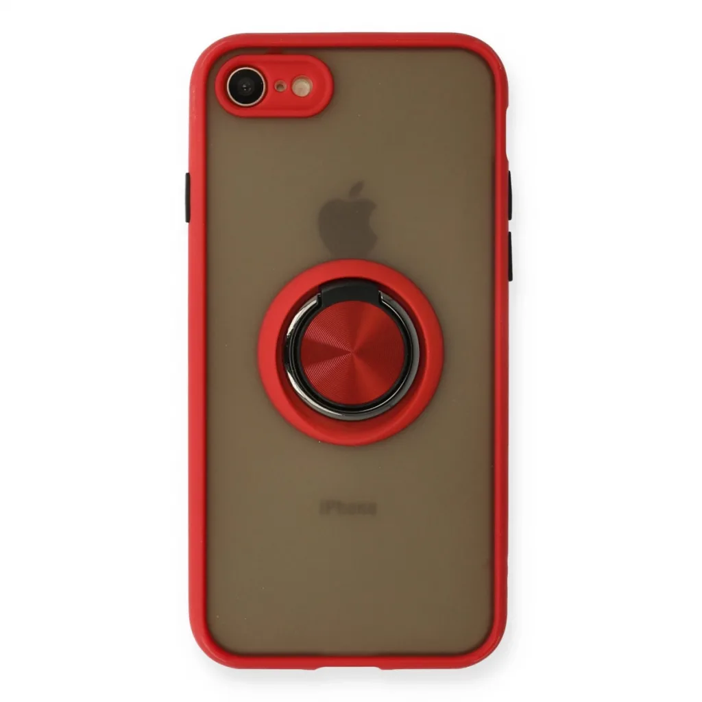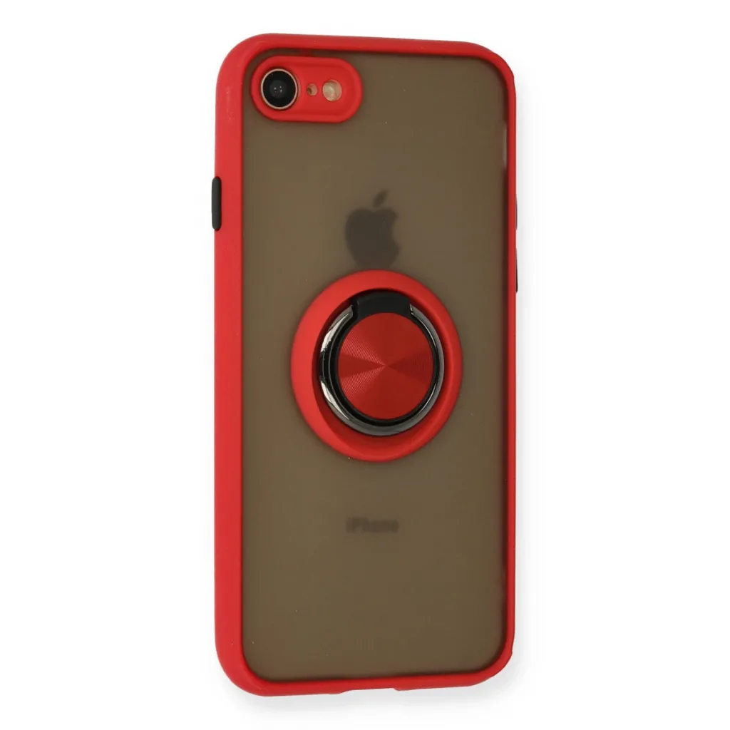 İphone 7 Kılıf Montreal Yüzüklü Silikon Kapak - Kırmızı