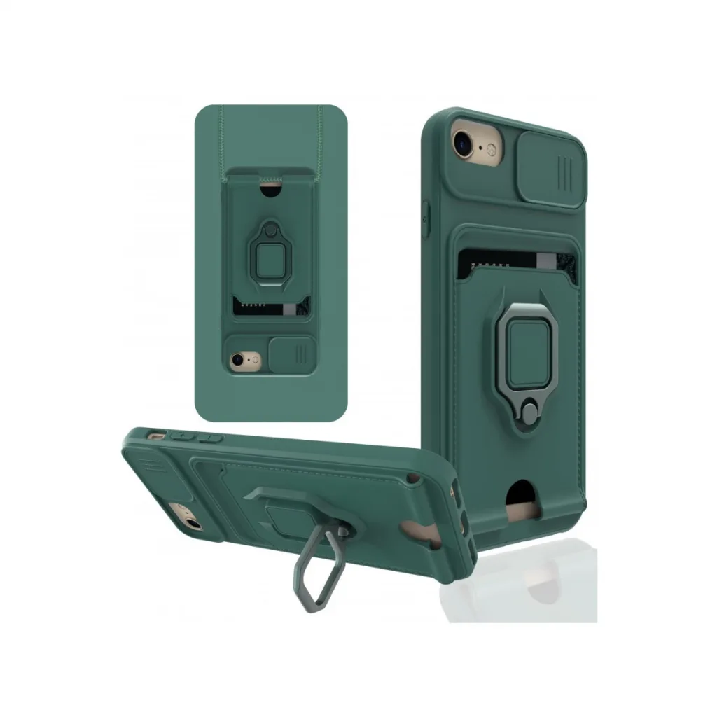 İphone 7 Kılıf Zuma Kartvizitli Yüzüklü Silikon - Yeşil