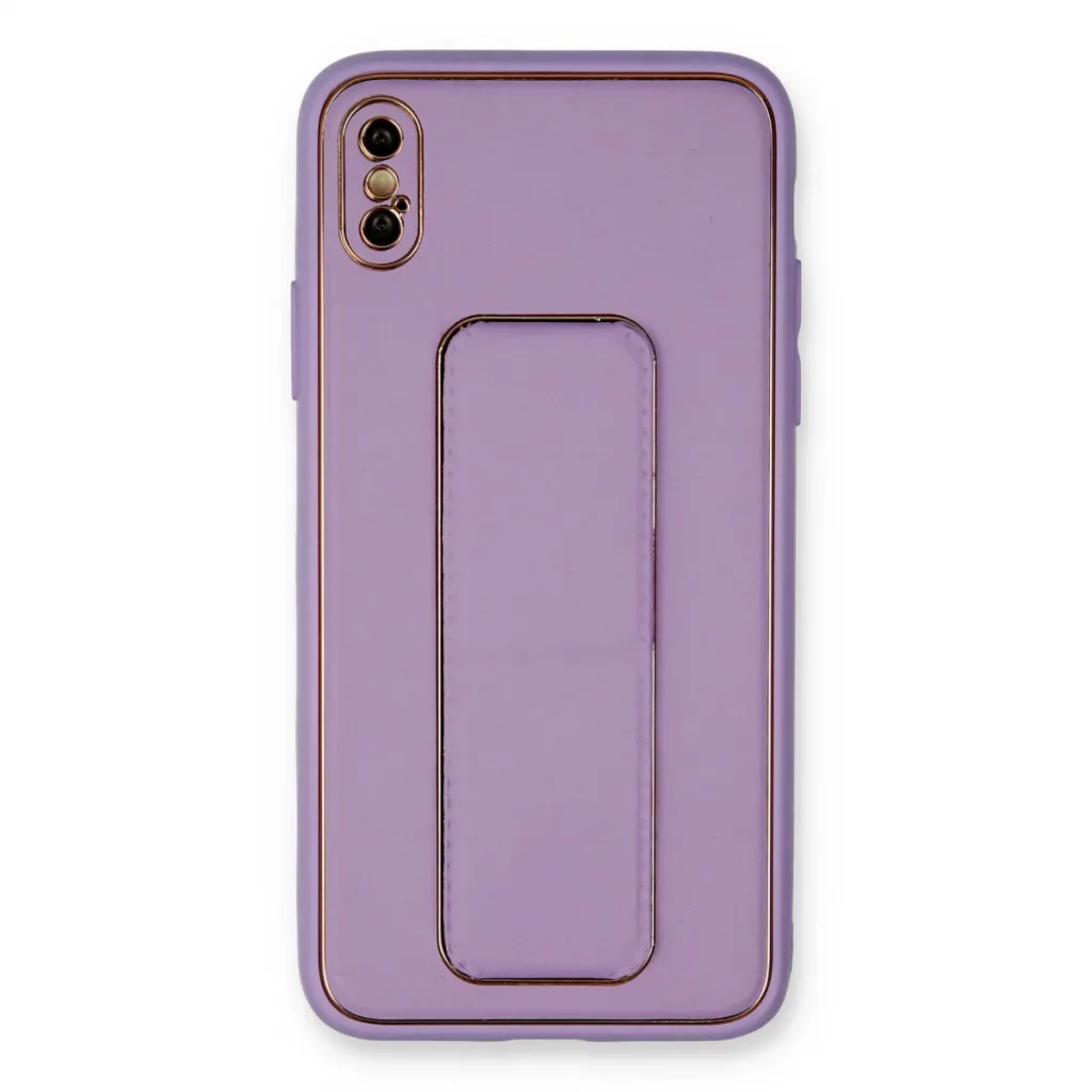 İphone Xs Max Kılıf Coco Deri Standlı Kapak - Koyu Lila