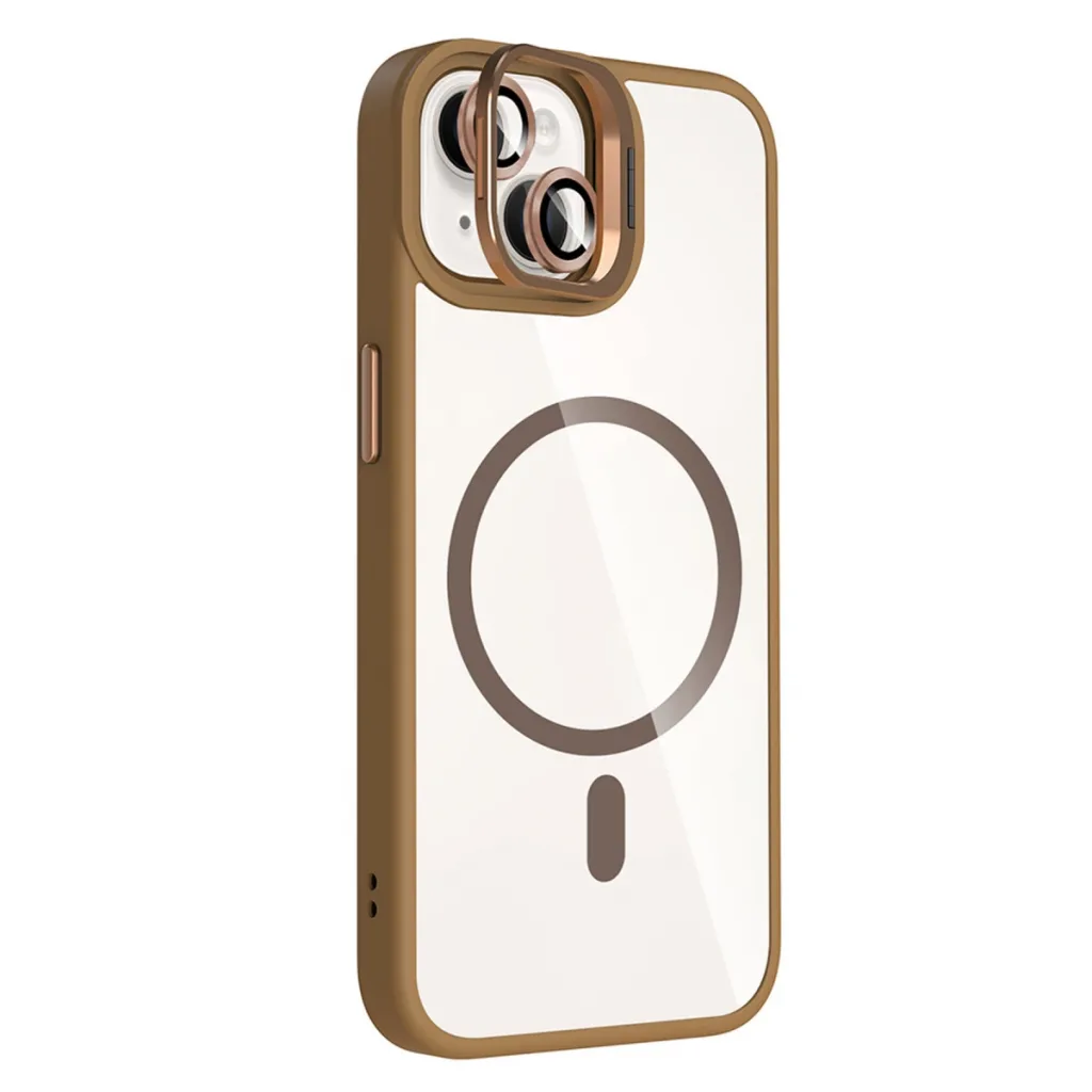 Joko Apple İphone 14 Remim Lensli Magsafe Standlı Kapak - Kahverengi