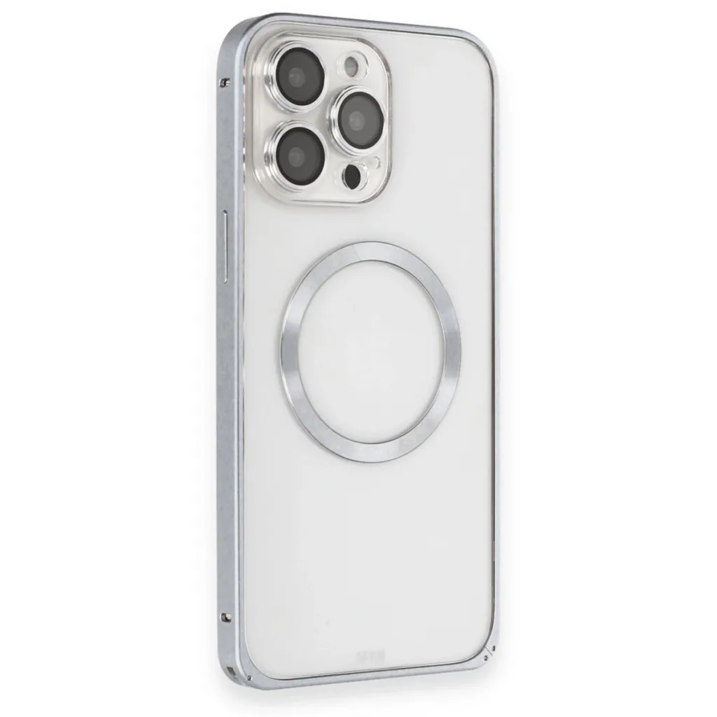 Joko İphone 15 Pro Max Kılıf Metal Bumper Magneticsafe Kapak - Gri