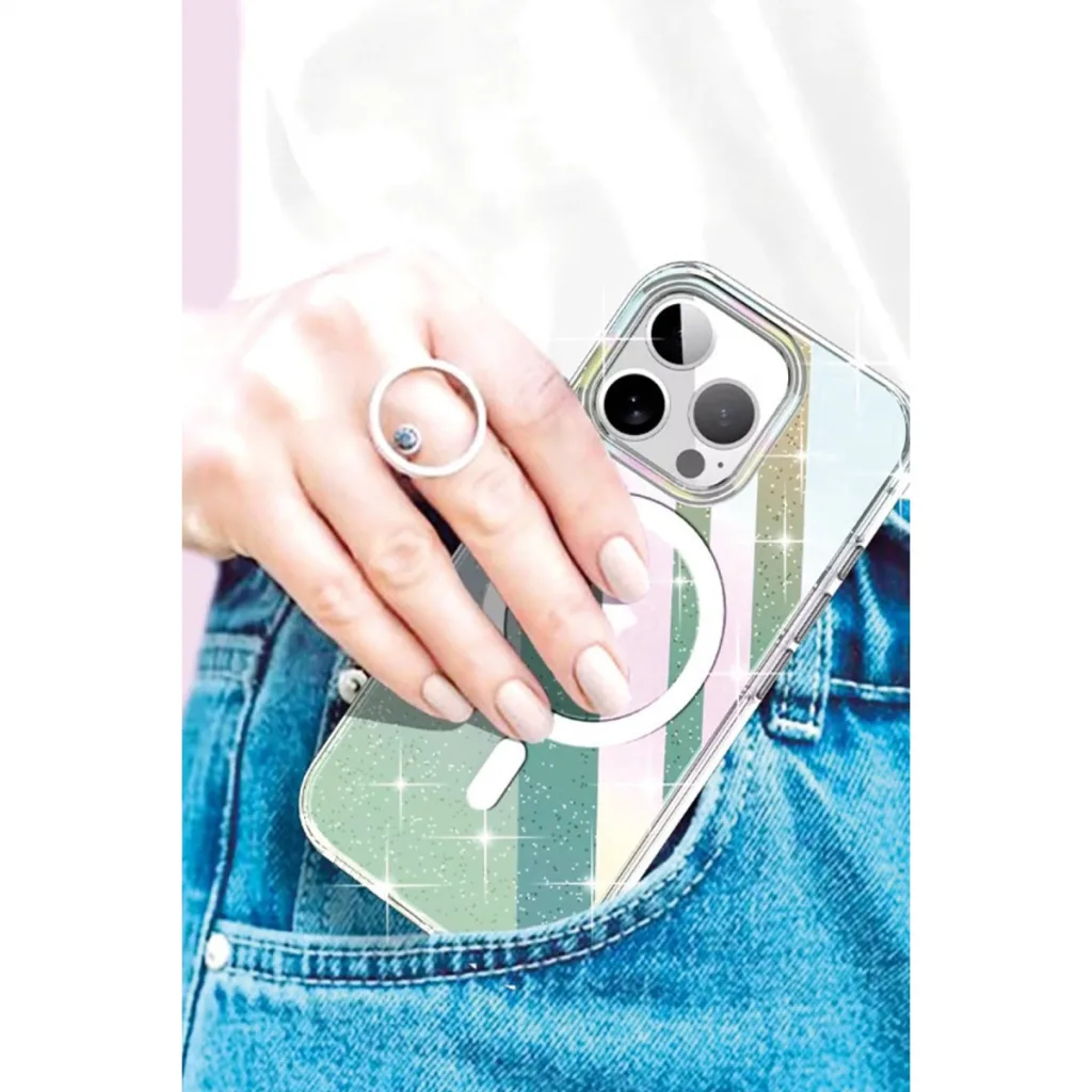 Joko İphone 15 Pro Max Rasasi Simli Magsafe Kapak - Şeffaf