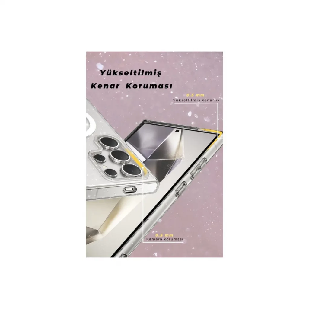 Glow MagSafe Kapak, telefonunuzu her açıdan öne çıkaran parlak ve şık bir tasarıma sahiptir. Simli arka planı, ışık altında parlayarak cihazınıza göz alıcı bir görünüm kazandırır.